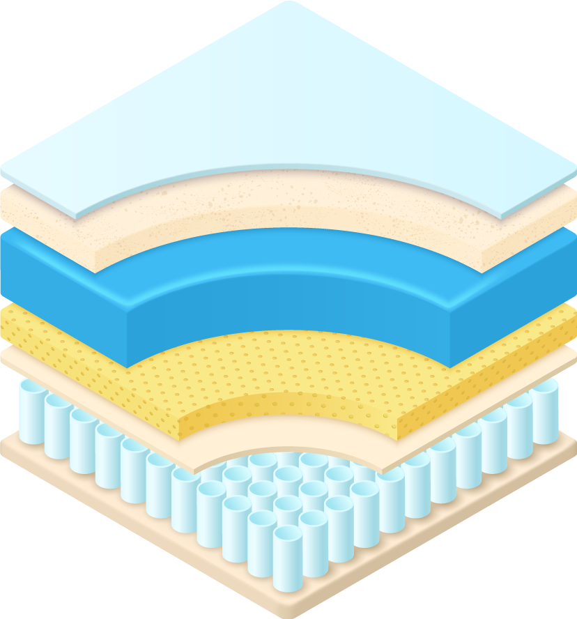 Contiene una combinación entre zonas de nano coils y resortes independientes lo que hace que un colchón tamaño Queen use más de 2000 resortes, esto ayuda a un mayor soporte en conjunto con su soporte perimetral.