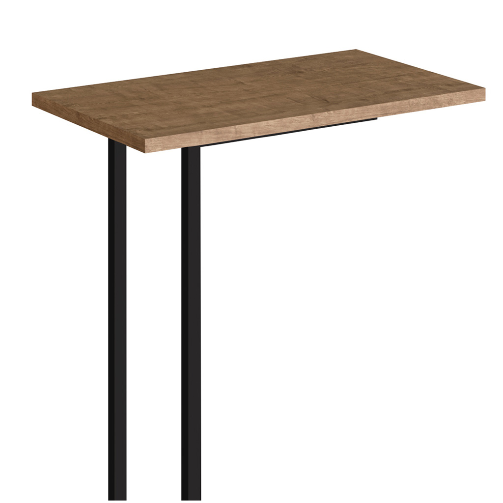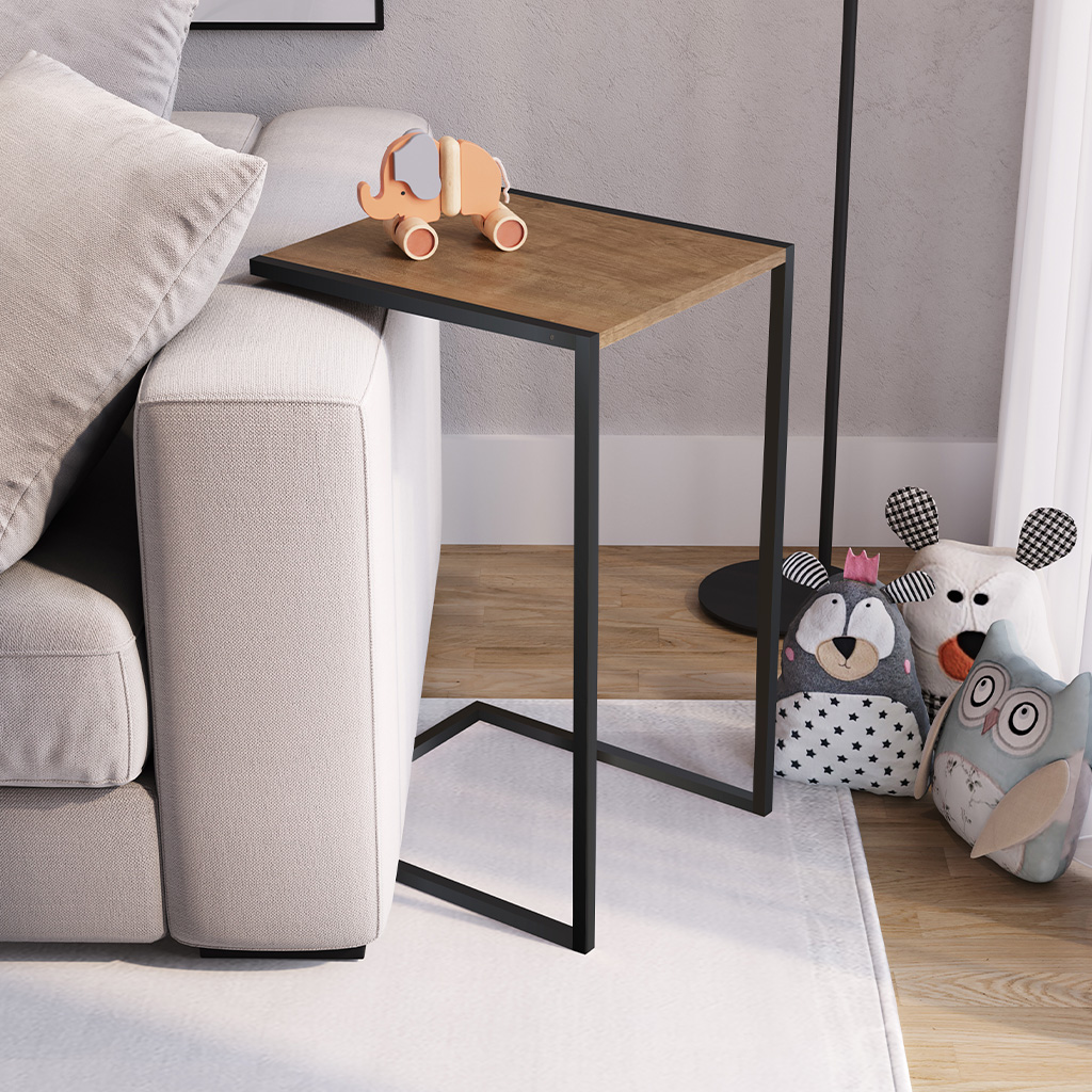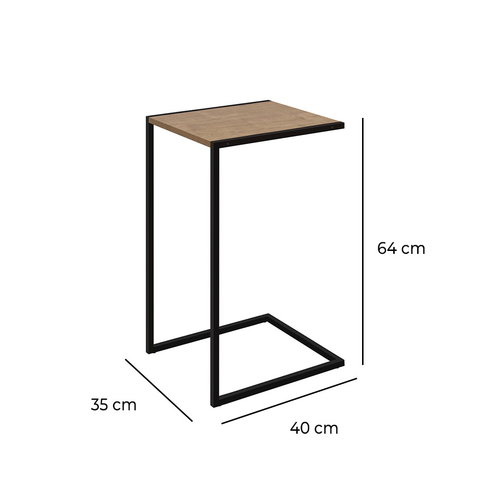 La mesa auxiliar lateral vermont ofrece un diseño minimalista y versátil que se adapta fácilmente a cualquier ambiente del hogar. Su estructura metálica en color negro le brinda resistencia y estabilidad, mientras que la superficie en acabado madera ingenierizada vermont aporta calidez y un estilo contemporáneo. Con medidas de 35 cm de ancho, 40 cm de profundidad y 63,5 cm de altura, es ideal para colocar junto al sofá, una butaca o incluso como mesa de apoyo en el dormitorio. Su diseño en forma de «c» permite deslizarla con facilidad, haciendo más práctico el uso para colocar bebidas, libros, dispositivos electrónicos o elementos decorativos. Gracias a su tamaño compacto y a la combinación de metal con madera, esta mesa auxiliar es una pieza funcional y elegante que complementa tanto espacios modernos como interiores más clásicos.