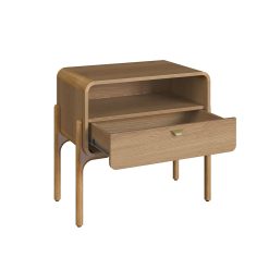 Esta mesa de noche combina funcionalidad y elegancia en una pieza de líneas suaves y proporciones equilibradas, ideal para complementar recámaras de estilo moderno, contemporáneo o escandinavo. Está fabricada en madera con acabado natural de tono cálido, que resalta la veta y aporta una sensación acogedora y sofisticada al espacio de descanso.